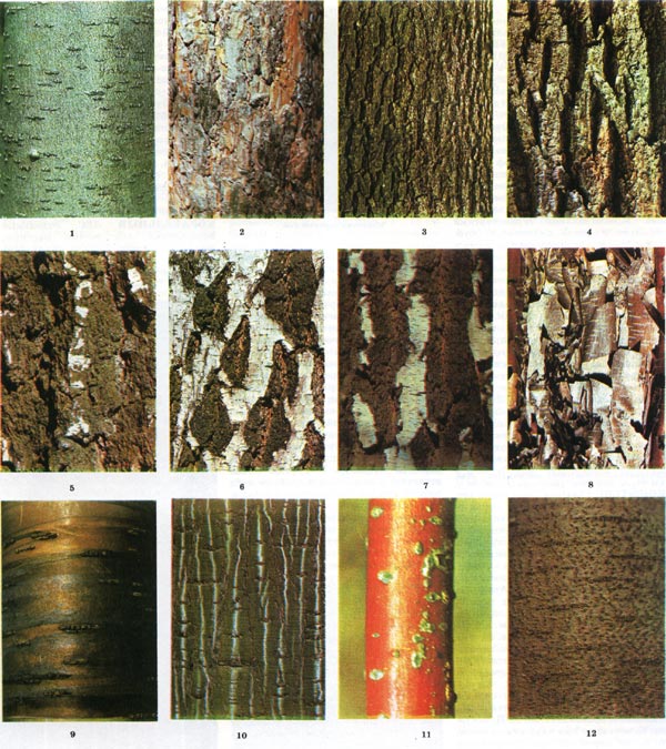Древесная кораДревесная кора — комплекс высокоспециализированных клеток и тканей, располагающихся с внешней стороны от камбия и выполняющих защитную и проводящую функции. По проводящим элементам коры осуществляется транспорт питательных веществ, образующихся в листьях. Древесная кора защищает дерево от повреждения животными, дереворазрушающими насекомыми и организмами, вызывающими гниение. Древесная кора также предохраняет камбий от потери влаги. По строению и составу древесная кора существенно отличается от древесины (ксилемы). Особая роль зеленых частей дерева — листвы и хвои, связанная с обеспечением жизненных процессов в растениях, в том числе древесных, также приводит к определенным особенностям их химического состава и строения. Строение древесной коры Древесная кора составляет значительную долю (от 6 до 25%) общего объема дерева, зависящую не только от древесной породы, но также от возраста дерева и условий роста. Чем больше диаметр ствола, тем больше древесной коры. С возрастом относительный объем древесной коры уменьшается. Ухудшение условий произрастания приводит к увеличению доли древесной коры. Кора взрослого дерева состоит из двух частей, различающихся анатомическим строением и функциями: внутренней — луба, или флоэмы, и наружной — корки. Относительное содержание этих частей коры зависит не только от древесной породы, но варьируется между отдельными деревьями одного и того же вида и даже в пределах индивидуального дерева. Ткани луба проводят соки (растворы органических веществ) вниз по стволу и хранят резервные питательные вещества. Ткани корки обеспечивают защиту от внешних воздействий. Кора хвойных деревьев имеет более простое строение по сравнению с корой лиственных деревьев. Строение древесной коры связано с образованием ее тканей из двух вторичных меристем — камбия и пробкового камбия (феллогена). При делении клеток камбия, наряду с образованием клеток ксилемы, появляются клетки луба (флоэмы), которые, подобно клеткам ксилемы, дифференцируются для выполнения различных функций. Во флоэме, как и в ксилеме, хотя и слабее, заметны кольца прироста шириной 0,1... 0,7 мм при ширине самого луба обычно в пределах 3... 10 мм. В лубе (флоэме) присутствуют три типа клеток и соответствующих тканей: ситовидные элементы, образующие проводящие ткани; паренхимные клетки, составляющие запасающие ткани; склеренхимные клетки — механические ткани. При этом по сравнению с ксилемой более значительную долю составляют живые клетки. Наиболее важная проводящая ткань луба состоит из ситовидных элементов — ситовидных клеток у хвойных деревьев и ситовидных трубок у лиственных. Ситовидные клетки — узкие длинные клетки, образующие продольные ряды и сообщающиеся между собой через пористые ситовидные поля в стенках клеток на их концах. Через мелкие многочисленные поры проходят цитоплазменные нити. Проводящая система луба лиственных деревьев более совершенна. У них образуются из клеток члеников ситовидные трубки, сообщающиеся друг с другом через пористые (с более крупными порами) ситовидные пластинки на поперечных стенках. Таким образом, проводящие элементы луба хвойных деревьев напоминают ранние трахеиды, а у лиственных деревьев — сосуды, но в отличие от трахеид и сосудов ситовидные элементы содержат живой протопласт (