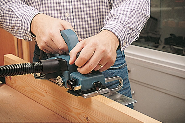 Как выбрать электрорубанокЕсли вы делаете какие-либо изделия из дерева, например скамейку или столик, то электрорубанок не заменимая вещь. Так же электрорубанок бывает очень нужен в дачном хозяйстве, т.к. обязательно при найдется что подстрогать. Следует отметить, что электрорубанок имеет значительные преимущества относительно ручного рубанка не столько в производительности, сколько в качестве обработки древесины. Однако учитывая, что в домашнем хозяйстве электрорубанок хоть и нужная вещь, но не необходимая к вопросу выбора следует подходить основательно, главным образом подобрать оптимальную модель в сочетании цена - качество. Естественно руководствоваться только ценой не правильно, но приобретать рубанок с характеристиками промышленного станка и переплачивать за это деньги, так же не целесообразно. Перед тем как перейти к рассмотрению характеристик рубанка, следует определиться с тем как он будет использоваться. В большинстве случаев рубанок в домашнем хозяйстве применяется не часто, и как правило используется для строгания досок в небольшом количестве, либо для снятия фасок. Соответственно если рубанок не используется для крупномасштабного строительства, например постройки каркасного дома, то не следует переплачивать деньги за мощный тяжелый высокопроизводительный электрорубанок. А какой электрорубанок выбрать тогда? Для того чтобы ответить на этот вопрос давайте рассмотрим основные характеристики рубанков. Глубина строгания Глубина строгания электрорубанка это без условно важный элемент. Однако, как показывает практика для бытового применения рубанка глубины строгания в 1,5 мм вполне достаточно. Причиной тому следующая особенность использования рубанка. Если вы строгаете доску шириной равной или меньше рабочей ширины рубанка, то проблем нет. В принципе можно снимать хоть по 10 мм за проход. Однако учитывая то, что рабочая ширина большинства рубанков составляет 82 мм, а ширина доски как правило больше, то возникает следующая проблема. На доске есть места разной твердости древесины. При строгании, особенно с большой глубиной строгания, в местах малой твердости съем материала получается больше, чем в местах большей твердости. Кроме того та ка строгать доску приходится минимум в два прохода, то образуется ступенька, т.е. высота поверхности доски обработанной за первый проход отличается от высоты обработанной за второй проход. А в местах с различной твердостью доски перепад может достигать 2 мм, при глубине строгания 1-1,5 мм. Если задача заключена в том, чтобы просто избавится от заусенцев, то это не проблема. Если же цель получить ровную гладкую доску, то здесь приходится искать выход. Самый простой выход из этой ситуации это выставлять не большую глубину строгания, примерно 0,5-1 мм, и обрабатывать доску по несколько проходов. Возникает вопрос, а стоит ли в таком случае переплачивать за электрорубанок с глубиной строгания 4-5мм? На мой взгляд нет, если конечно не предполагается строгать доски шириной меньшей или равной ширине платформы рубанка. Направление выброса стружки Дешёвые рубанки имеют одно отверстие для выброса стружки, дорогие модели да, причем имеется возможность менять направление выброса. Казалось бы мелочь, но на практике это очень важная опция, особенно при работе с пылесборником. Конечно этой